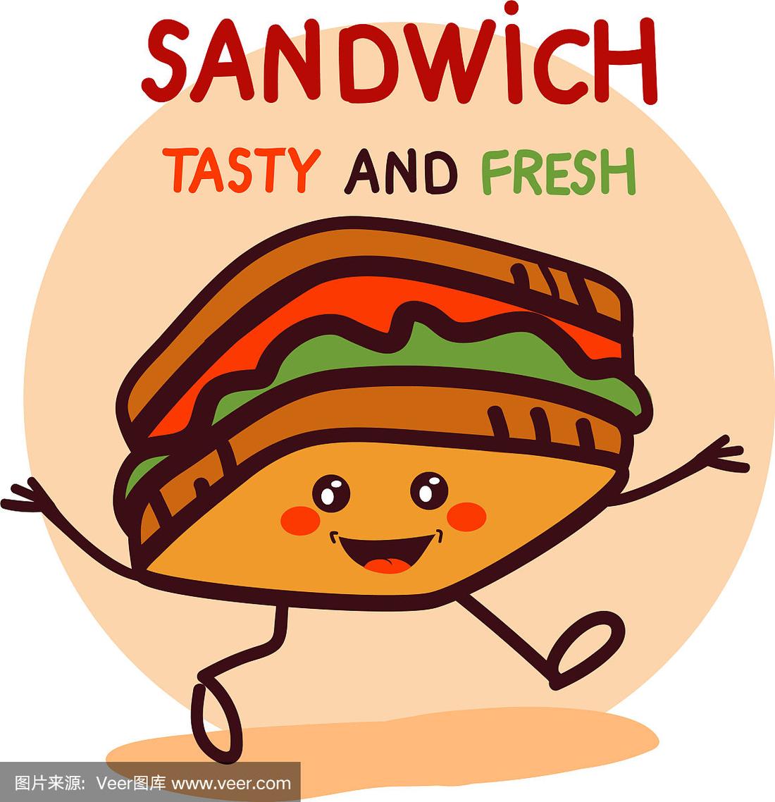 三明治可爱的动漫人性化的卡通食品