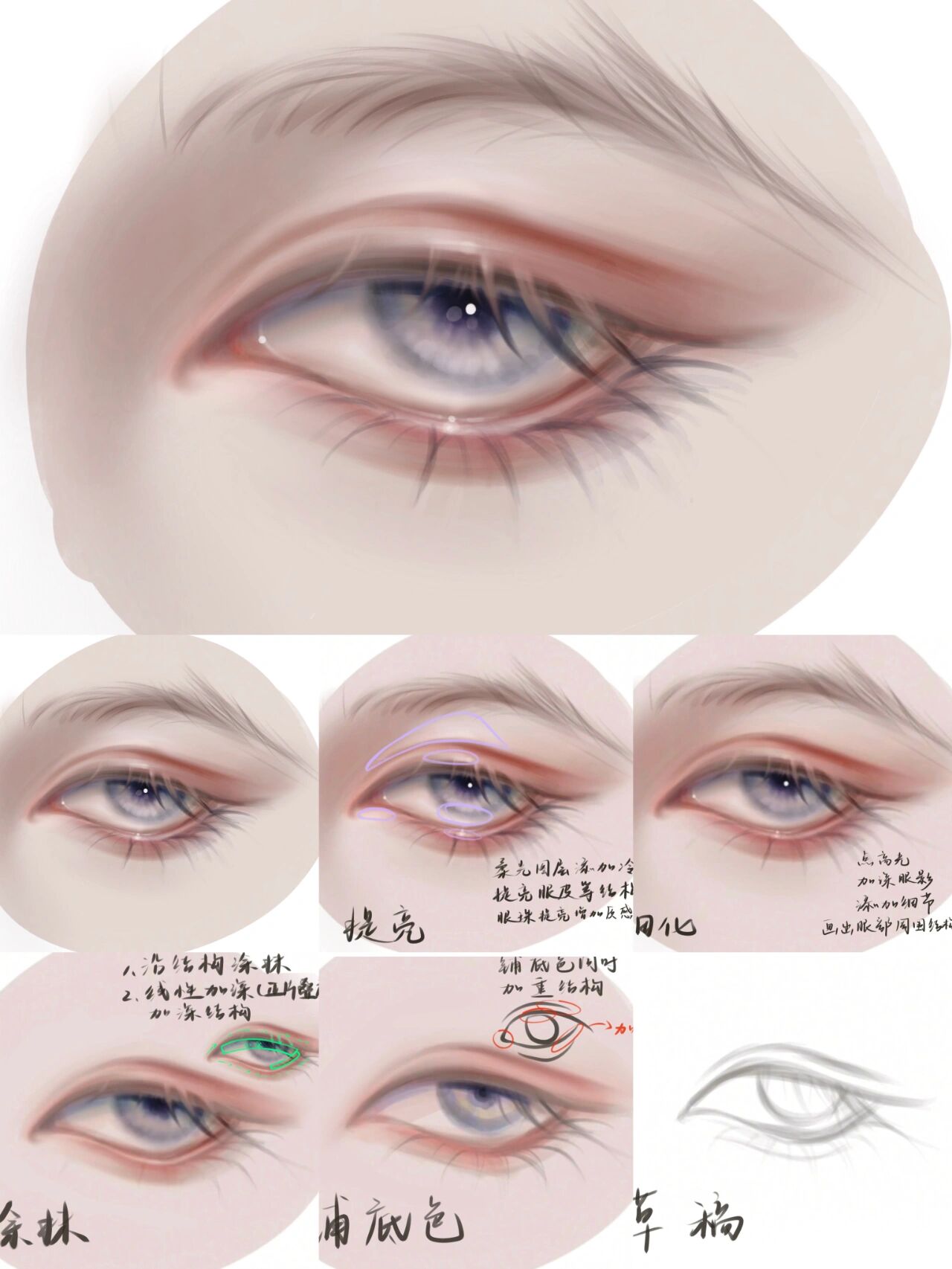 半厚涂古风男眼睛教程 图片版 补发个图片版 视频版在主页