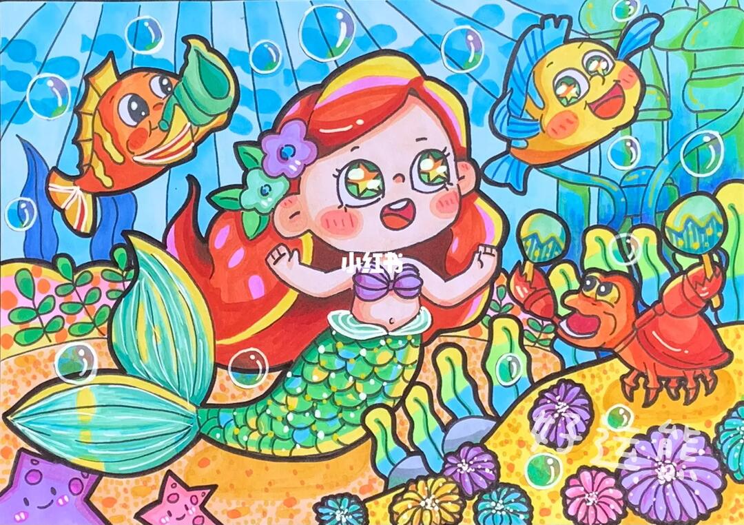 吖丫乐手绘美人鱼主题儿童画