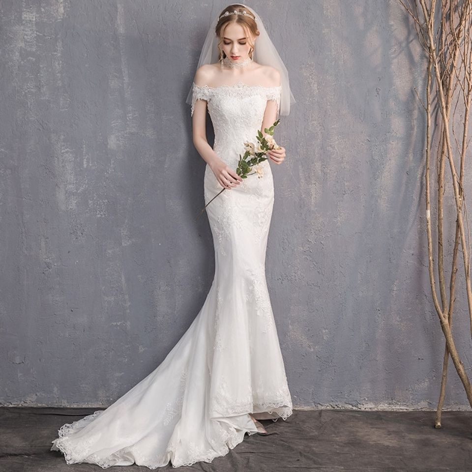婚纱2020秋冬新款欧美质感蕾丝鱼尾新娘户外婚纱