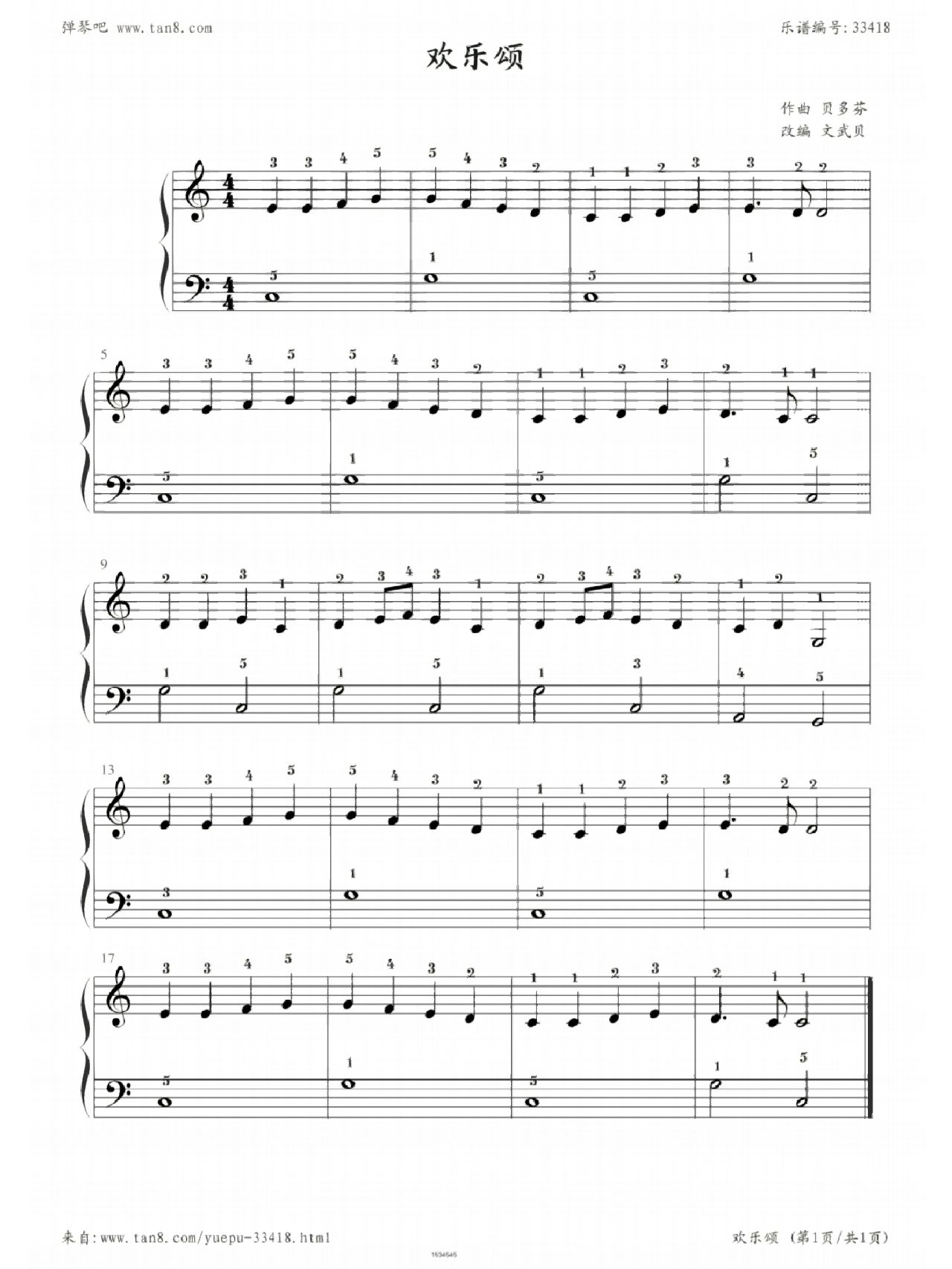卡农钢琴谱_johannpachelbel_canon_c大调初学者版