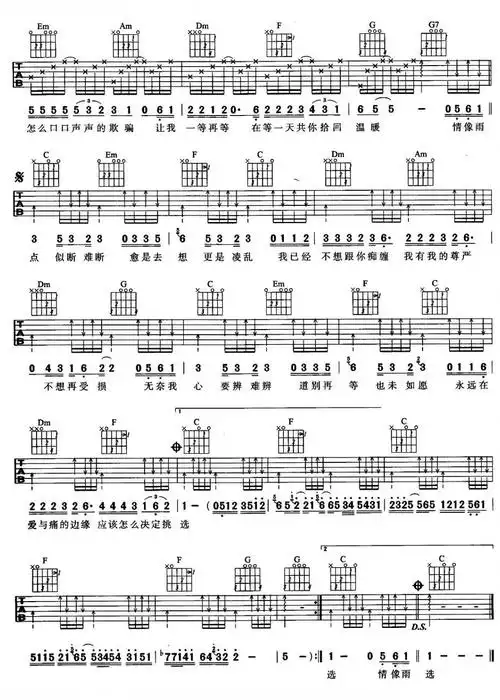 爱与痛的边缘吉他谱图片格式六线谱