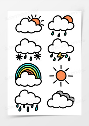一组卡通简笔画手账天气预报装饰素材