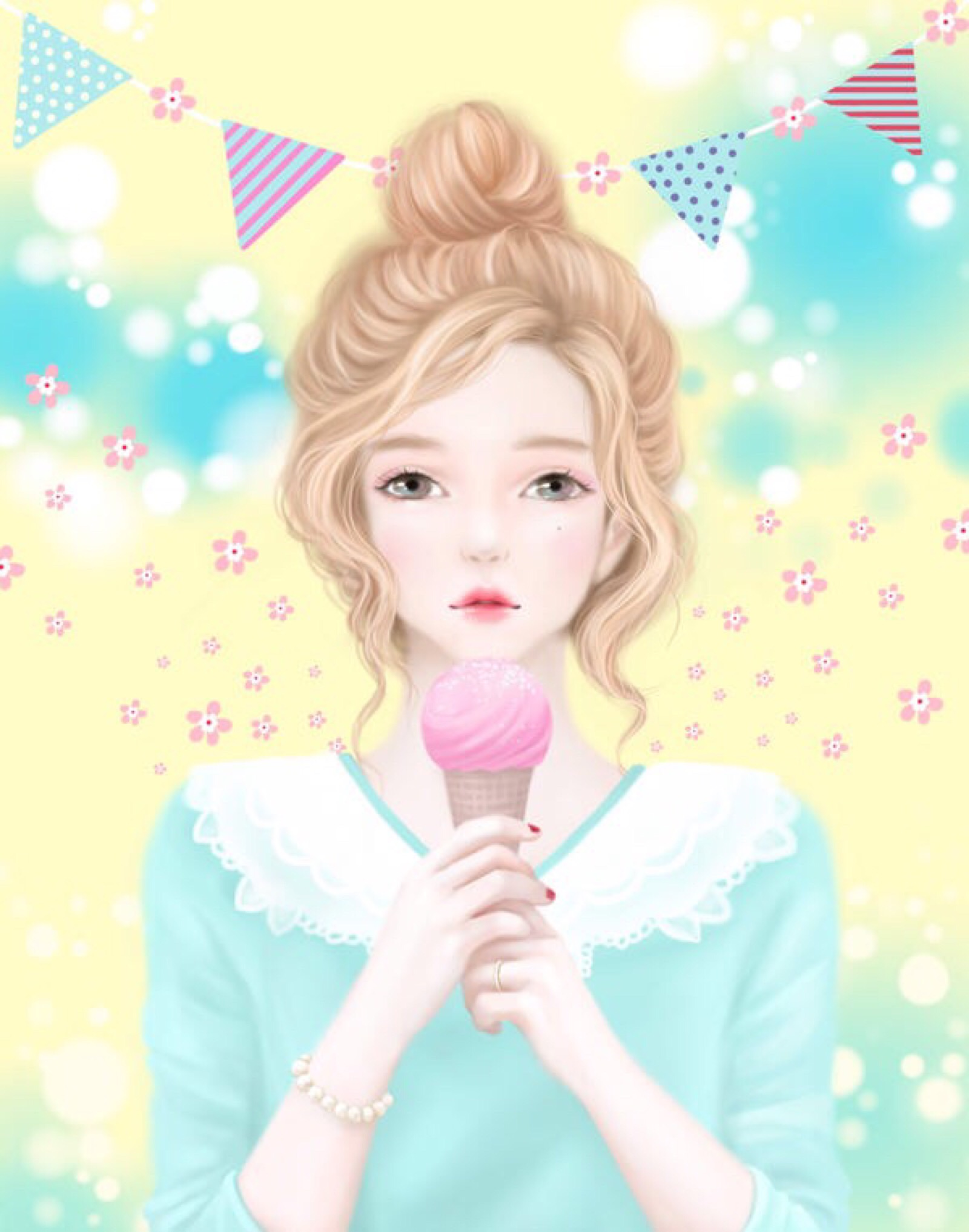 韩国手绘女孩插画头像