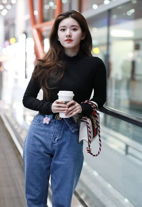 赵露思新拍大片,牛仔裤穿的无影无踪,谁敢说她腿粗_时尚_造型_黑色