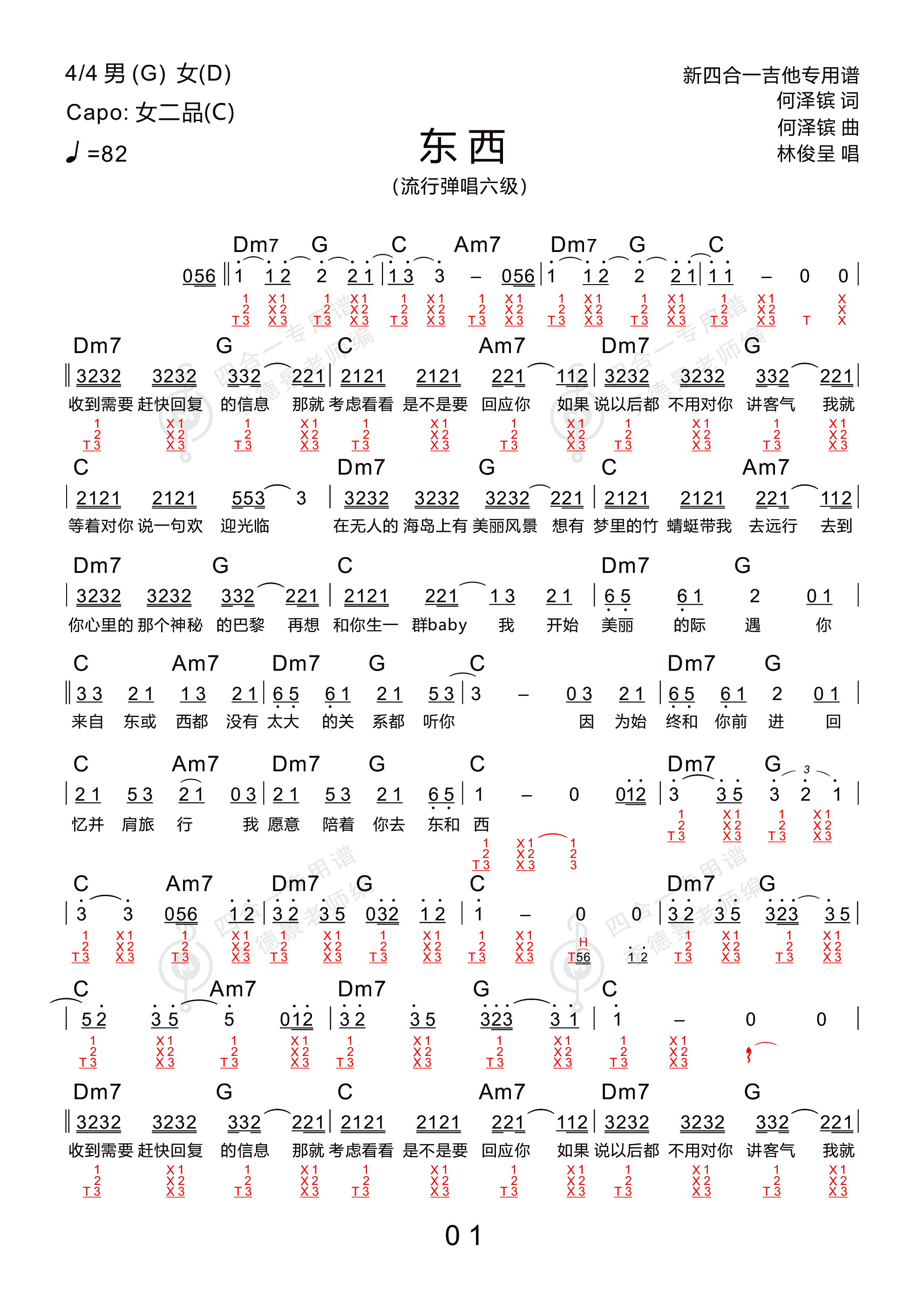 林俊呈《东西》吉他谱 c调简单版(酷音小伟吉他)