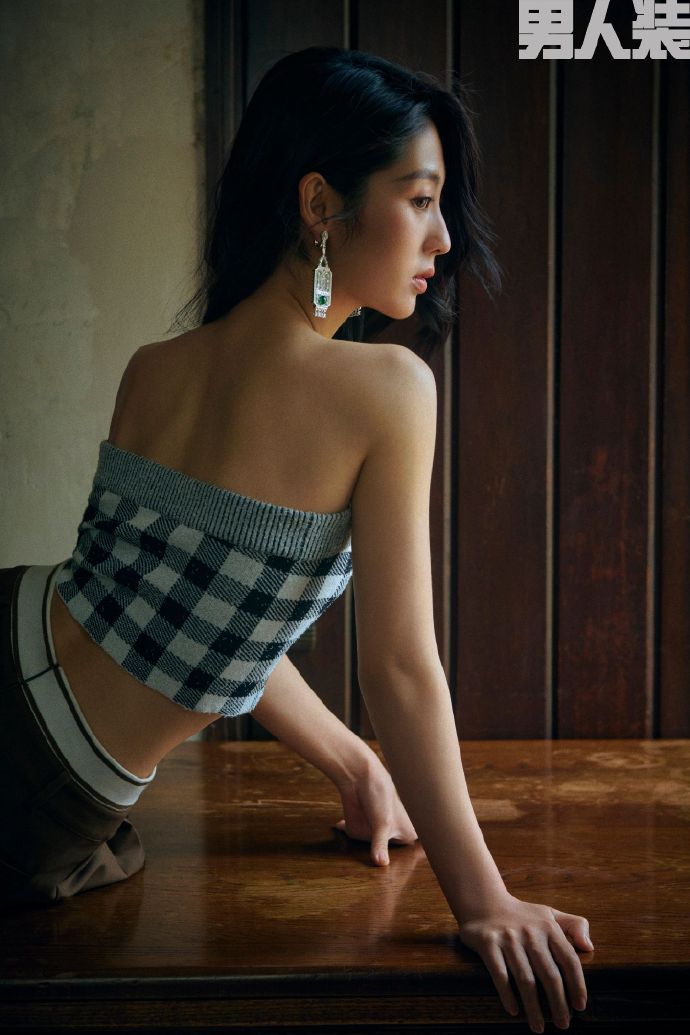 邢菲登《男人装》封面,吊带透视抹胸性感迷人,穿深v大秀美背