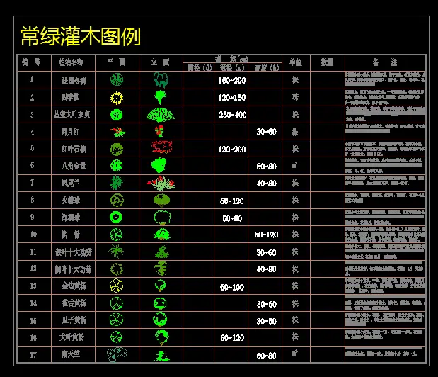 松柏类图例落叶灌木图例平面图树木图块是cad操作中比较核心的工作