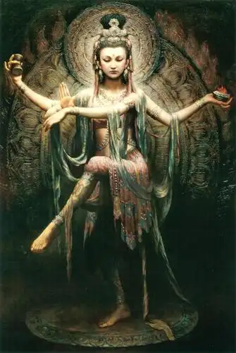 敦煌莫高窟320窟飞天 敦煌莫高窟320窟飞天敦煌壁画 岩彩