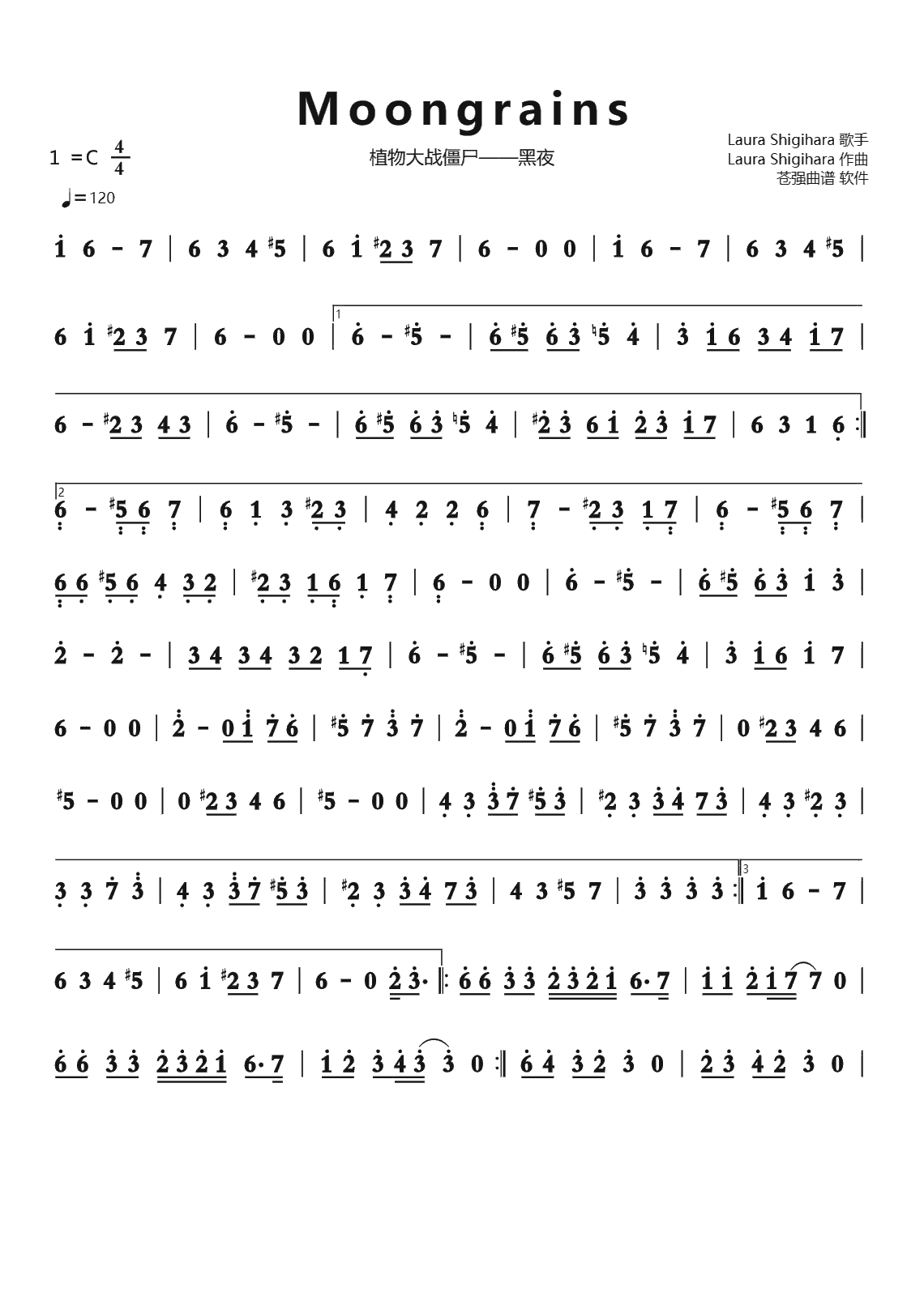 植物大战僵尸迷雾bgm双手简谱预览1
