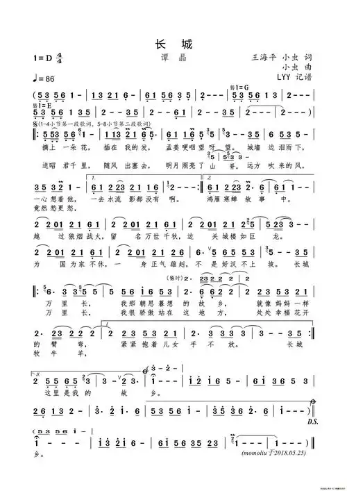 长城(王海平 小虫词 小虫曲)_简谱_搜谱网