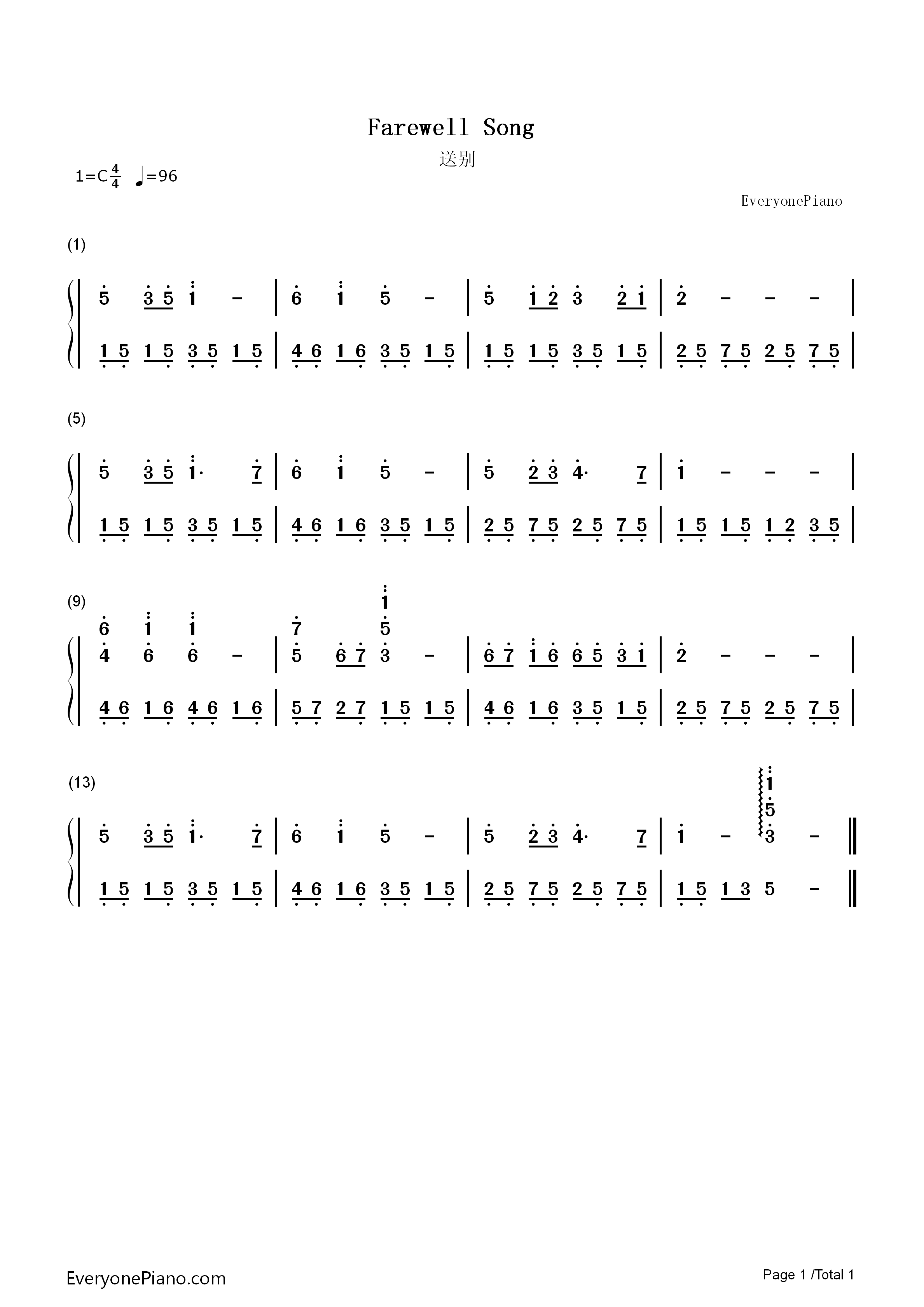 送别(钢琴启蒙小曲 105) 歌谱简谱网