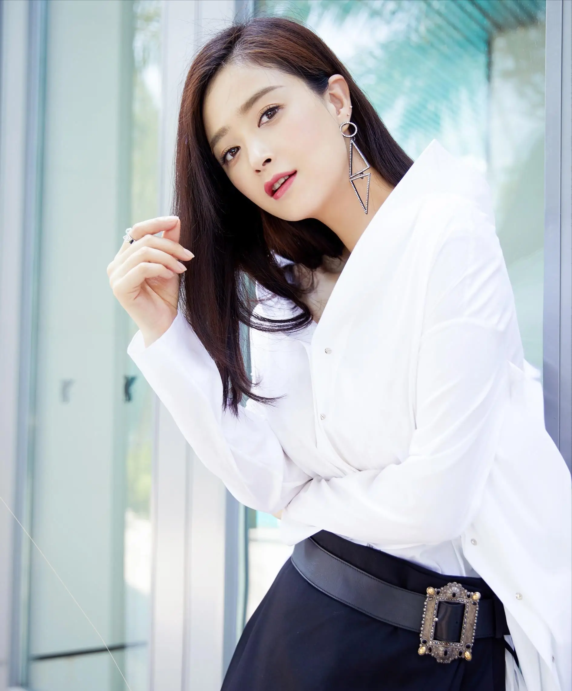 蒋欣高马尾配淡妆好显嫩穿深色衬衫也清纯没了华妃的跋扈