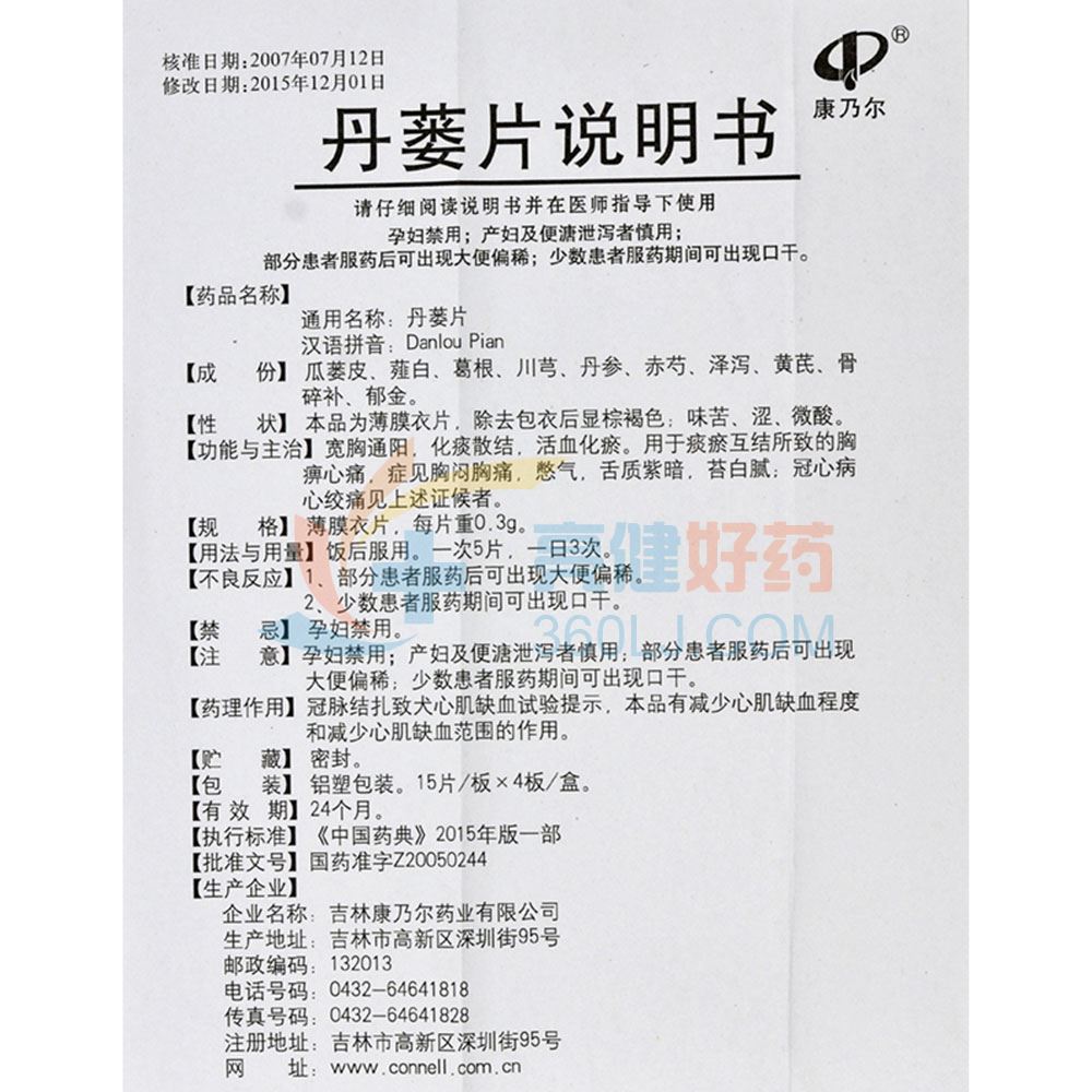 康乃尔丹蒌片0.3g*60片价格及说明书-功效与作用-亮健好药网