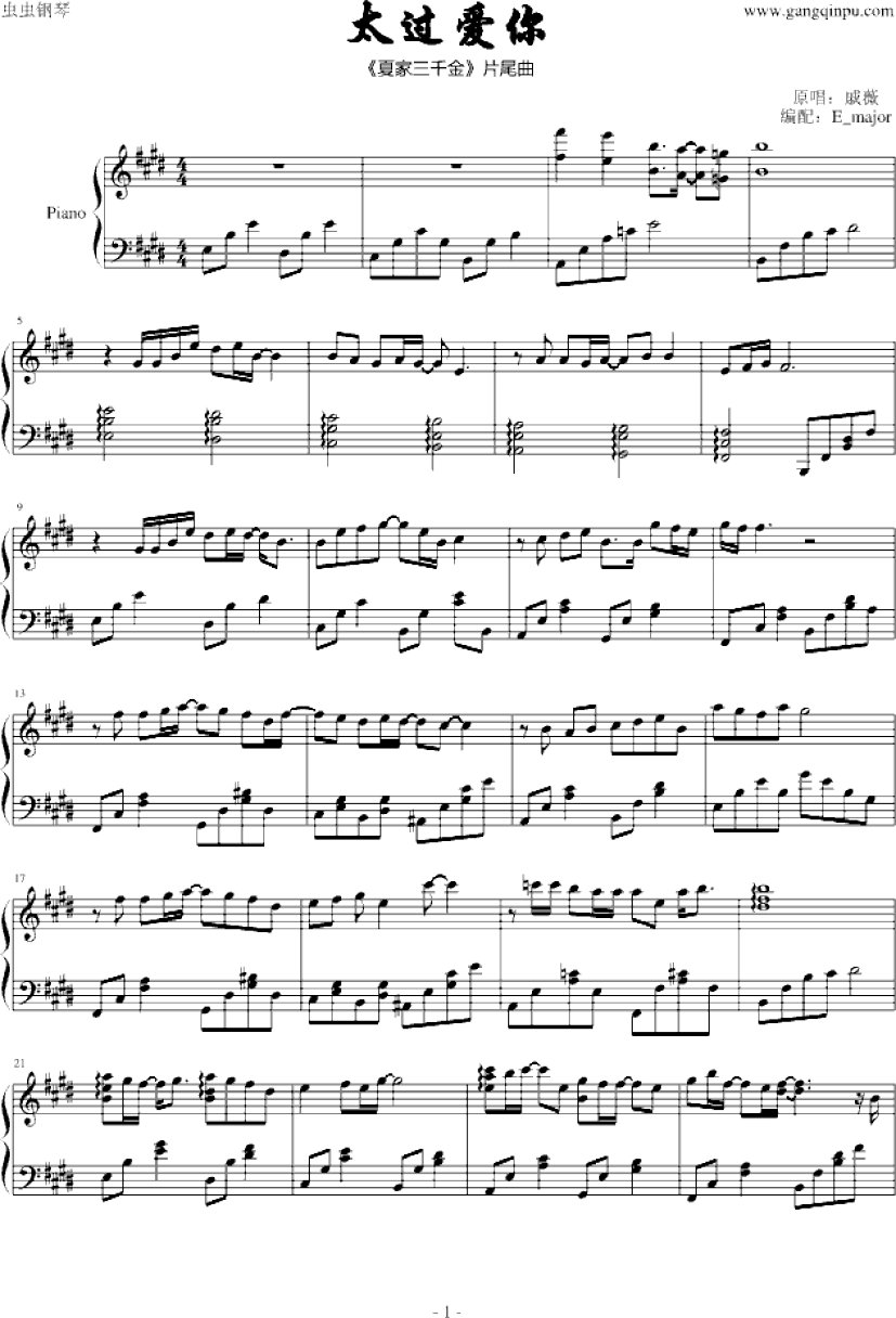 太过爱你 - 钢琴谱 - 环球钢琴网