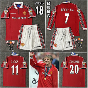 9899力曼联复古球衣三冠王主场7号贝克汉姆长袖足球服吉格斯套装