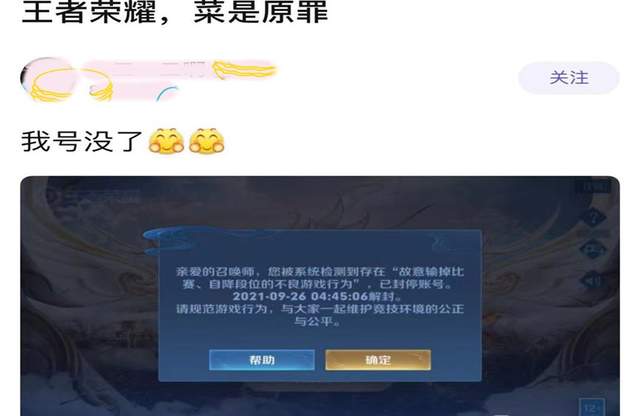 王者荣耀v10女玩家苦练李白,结果被封号30天!网友:建议封永久