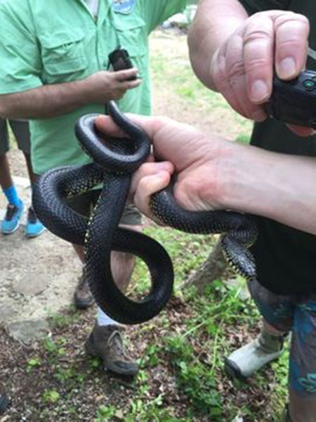女子野外探险偶遇黑王蛇霸气的外表却不料性情温和