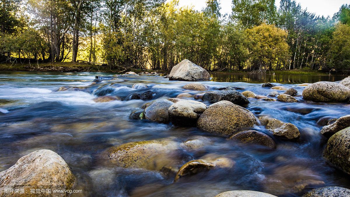 河水清澈见底,水底色彩绚烂的鹅卵石清晰可见.