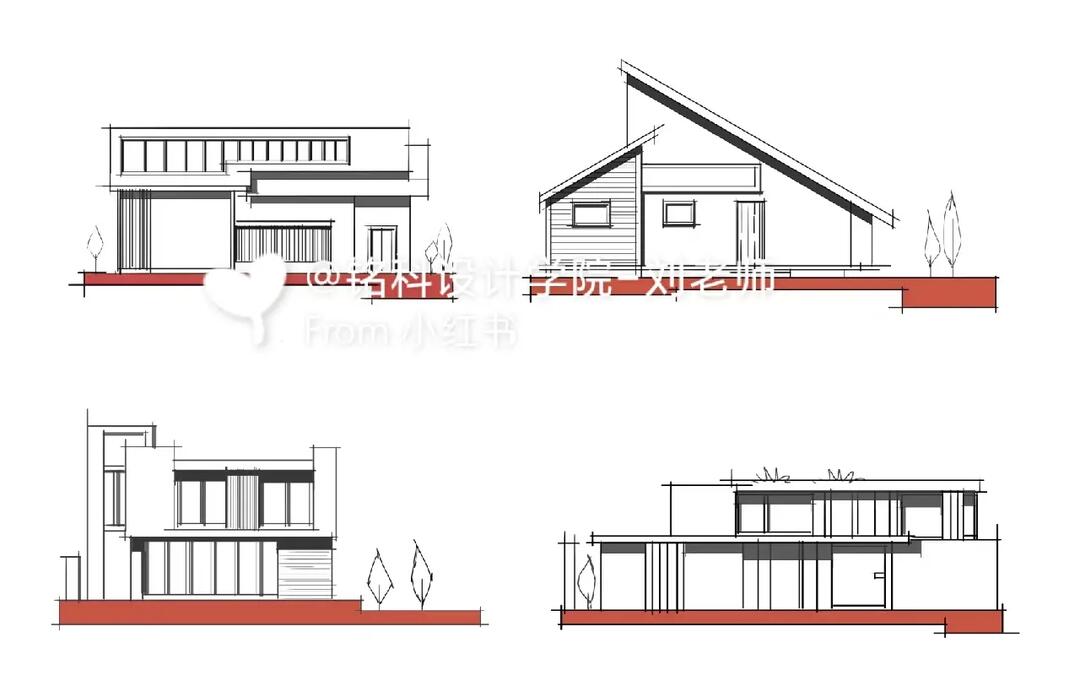 几根线条才能交代清楚 不准确的两个立面图 直线 直线在建筑手绘中