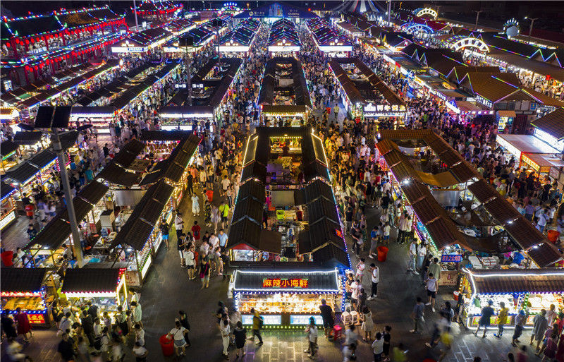 沈阳航拍塔湾兴顺国际夜市人气旺