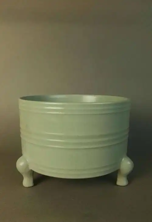 河南省考古研究所在清凉寺遗址考古挖掘出土:北宋 汝窑天青釉三足樽