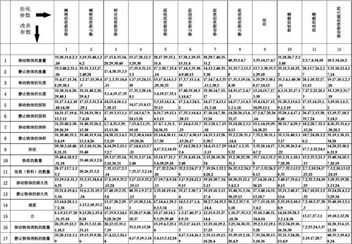 triz矛盾矩阵表