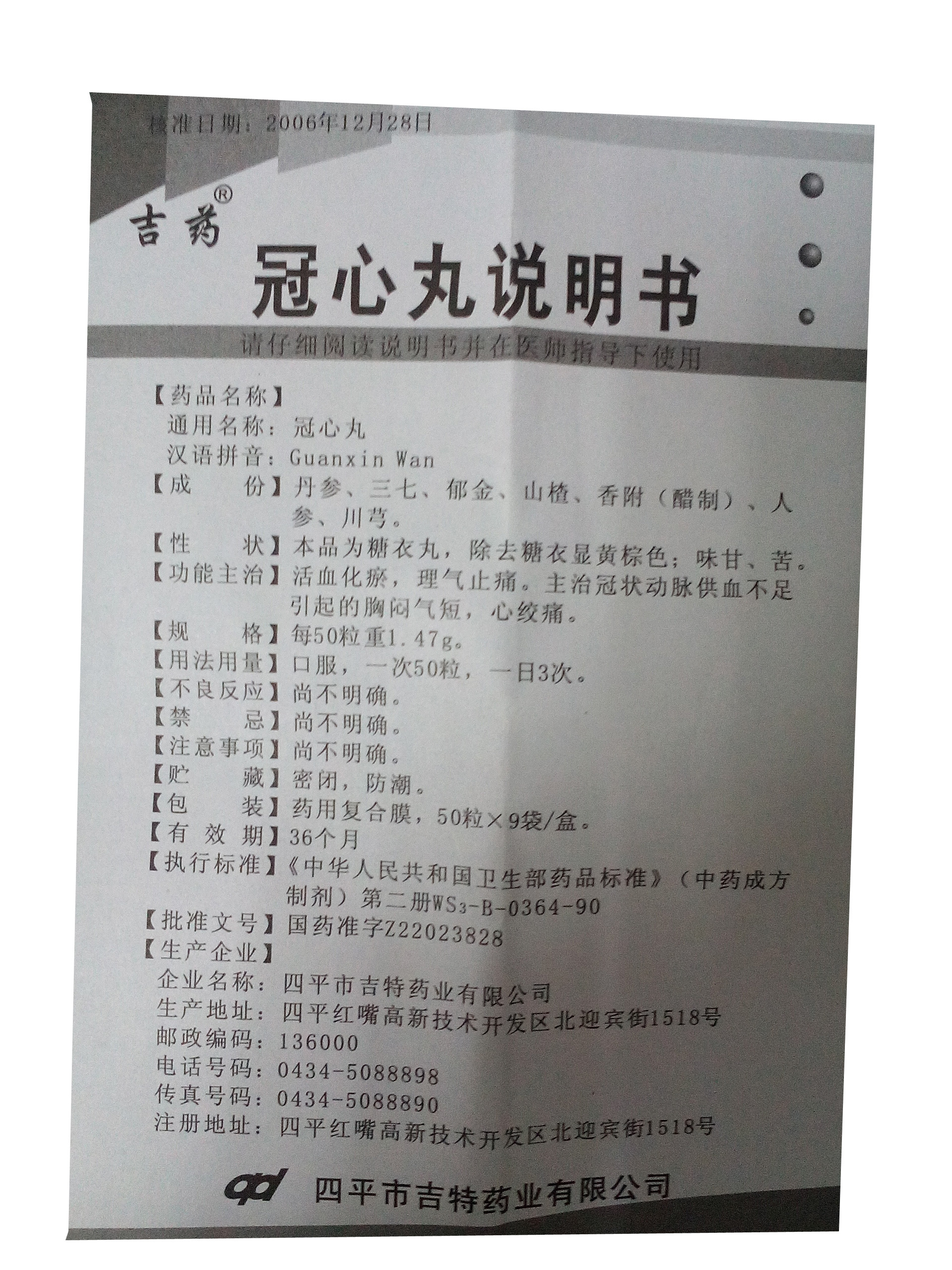 冠心安滴丸(东宝)(冠心安滴丸)_价格_说明书_功效_副作用_康太太网上