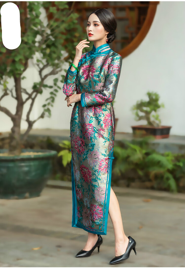 新中式冬季旗袍加绒加厚长款长袖改良旗袍中国风高档日常中长款 - 17