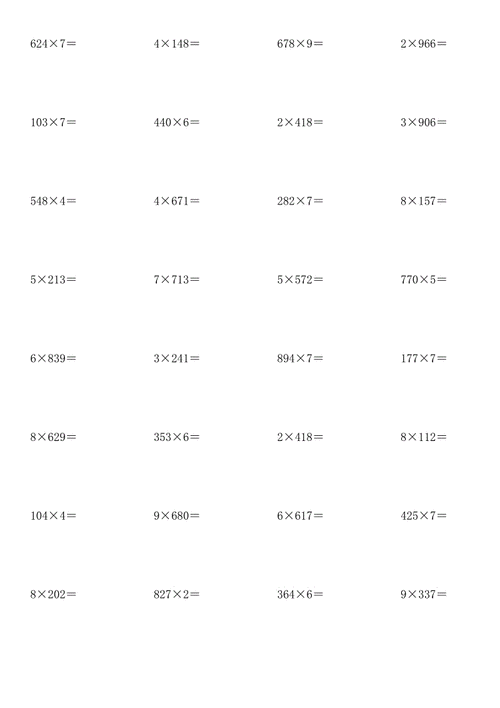 三位数乘以一位数竖式计算.doc