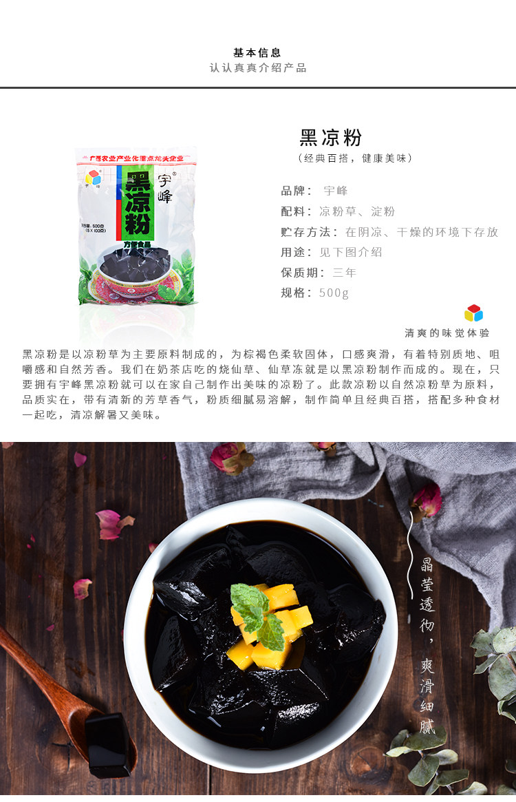 宇峰黑凉粉500g商用烧仙草粉冻冰粉甜品布丁龟苓膏摆摊材料专用粉