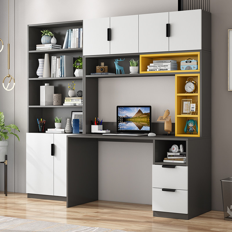 书桌台式台式电脑电脑桌定制转角书柜组合家用简约连体书桌柜