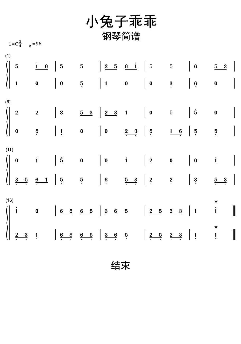 小兔子乖乖钢琴谱简谱乐谱调六线简谱-虫虫吉他谱免费下载