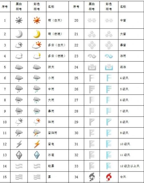 常用的天气预报的符号