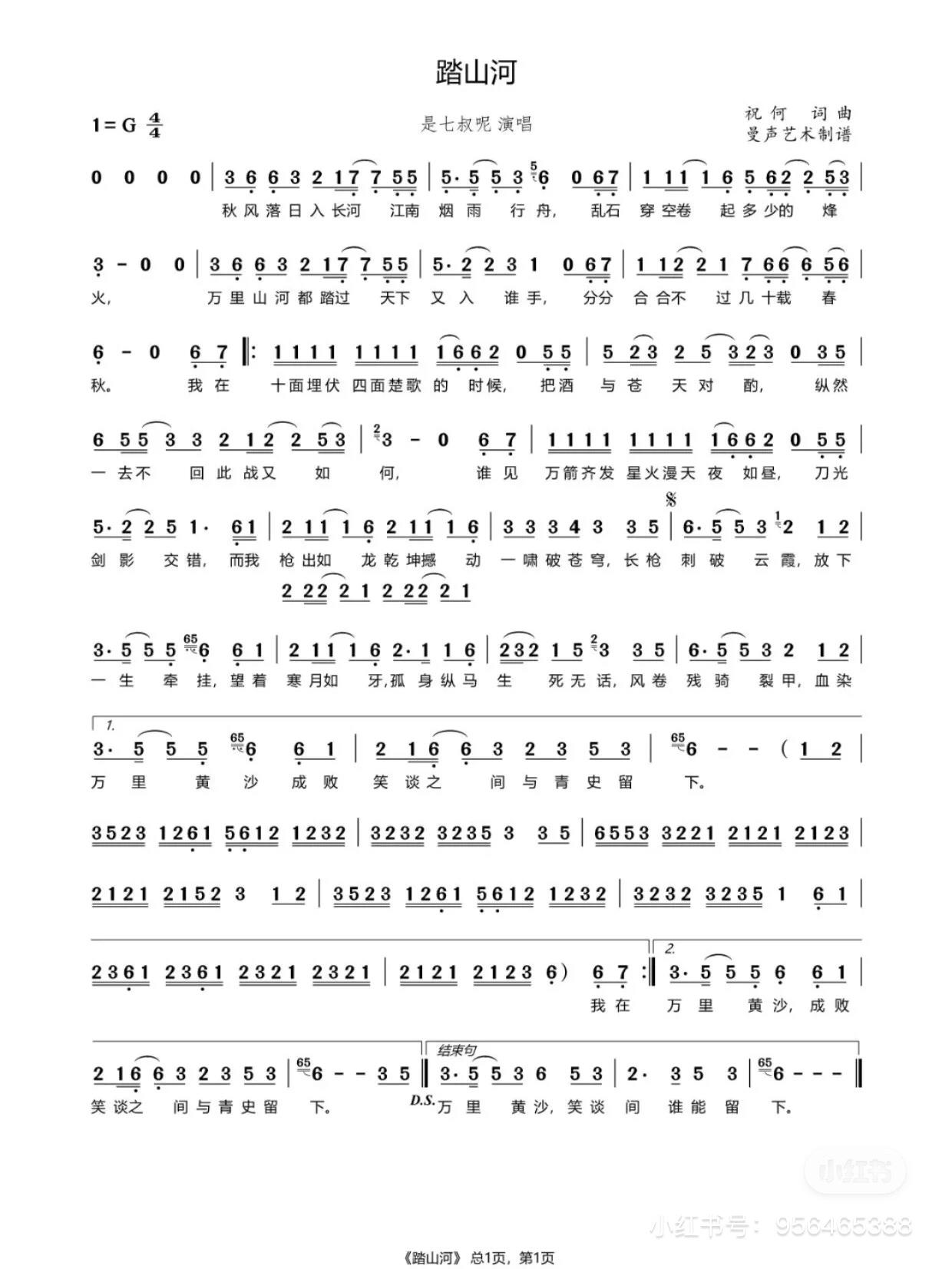 歌曲简谱是七叔呢踏山河免费高清歌谱简谱流行弹唱网