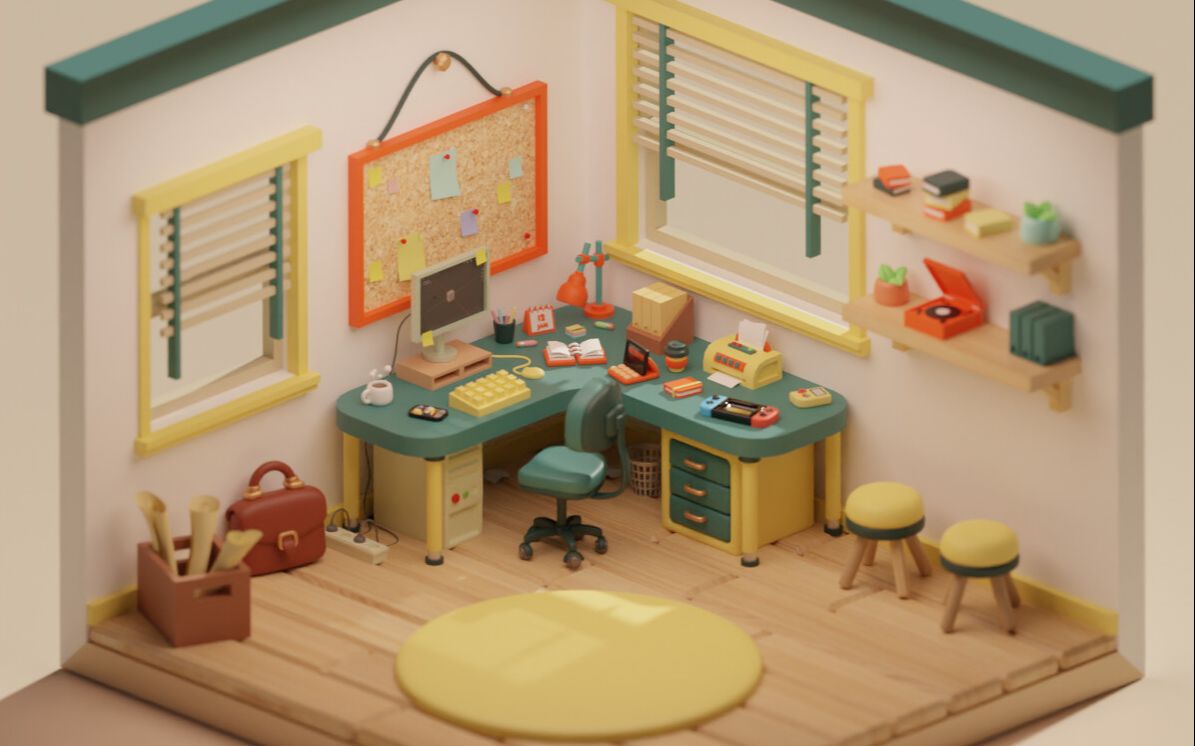 maya室内场景模型屋子房子q版卡通工作室arnold材质灯光渲染-m480