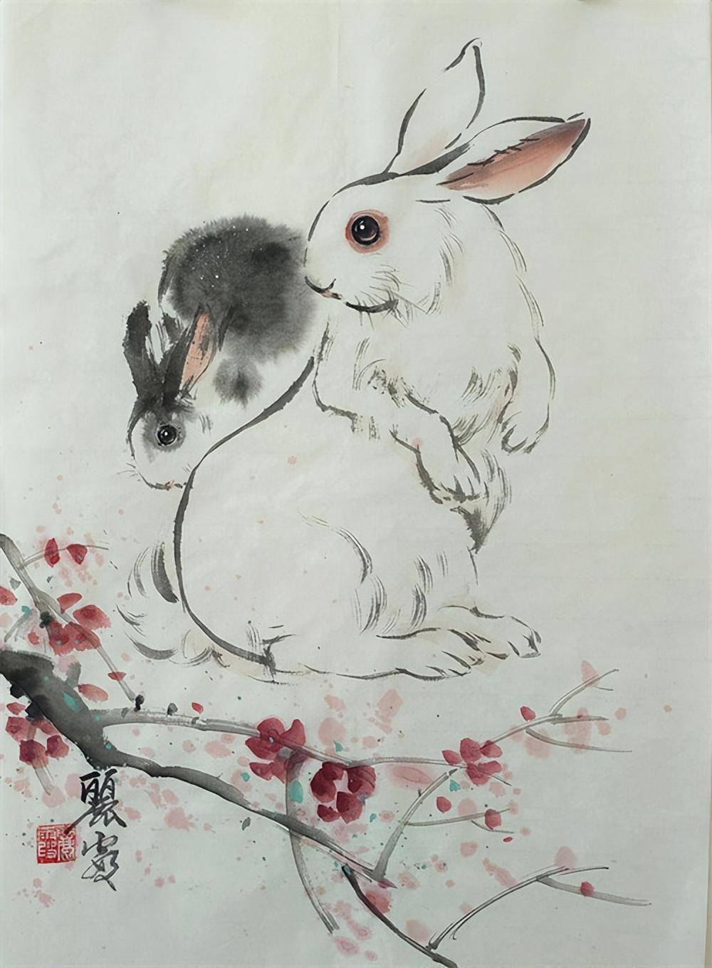 玉兔献瑞 国画贺岁--董丽霞老师生肖画作品赏析_象征_兔子_人们