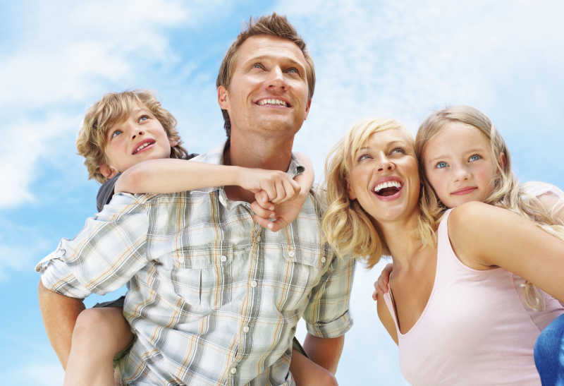 天空背景下幸福的一家四口
