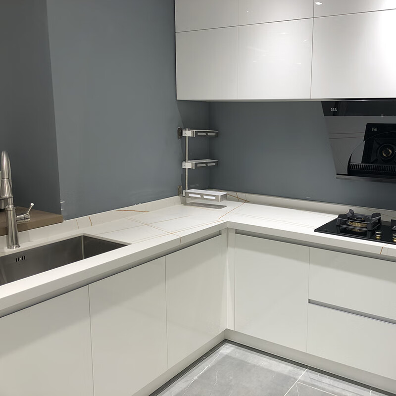 东莞橱柜定制现代简约轻奢风厨房l型整体开放式吸塑门石英石台面