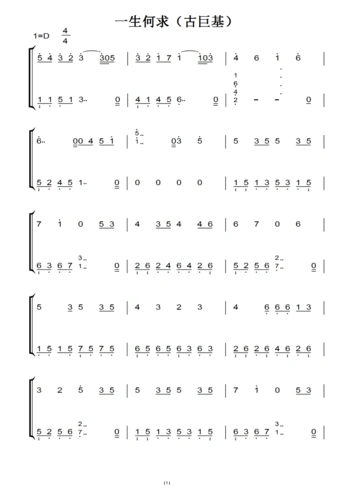 一生何求(古巨基) 香港原版 钢琴双手简谱 钢琴谱 钢琴简谱