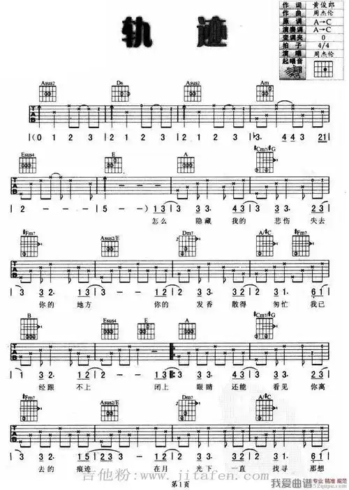 周杰伦《轨迹》吉他谱/六线谱 吉他谱
