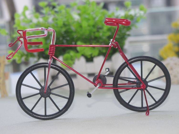儿童自行车玩具纯手工制作合金车模铁艺自行车模型摆件小创意礼品