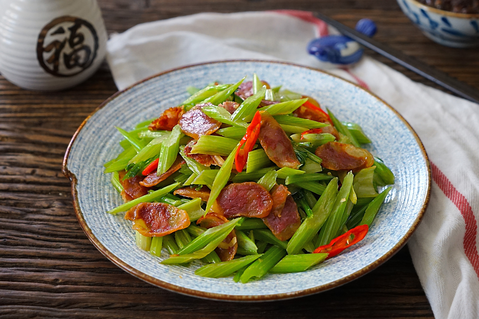 五分钟快手菜腊肠炒芹菜来啦清爽又下饭