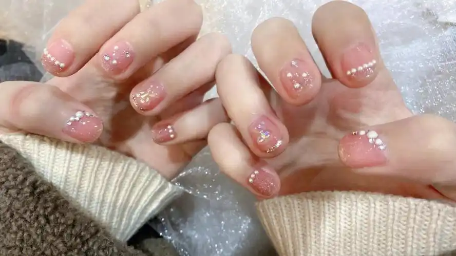 纯色美甲已经开始审美疲劳了,这次换了个特别清透的亮晶晶圆短甲款式
