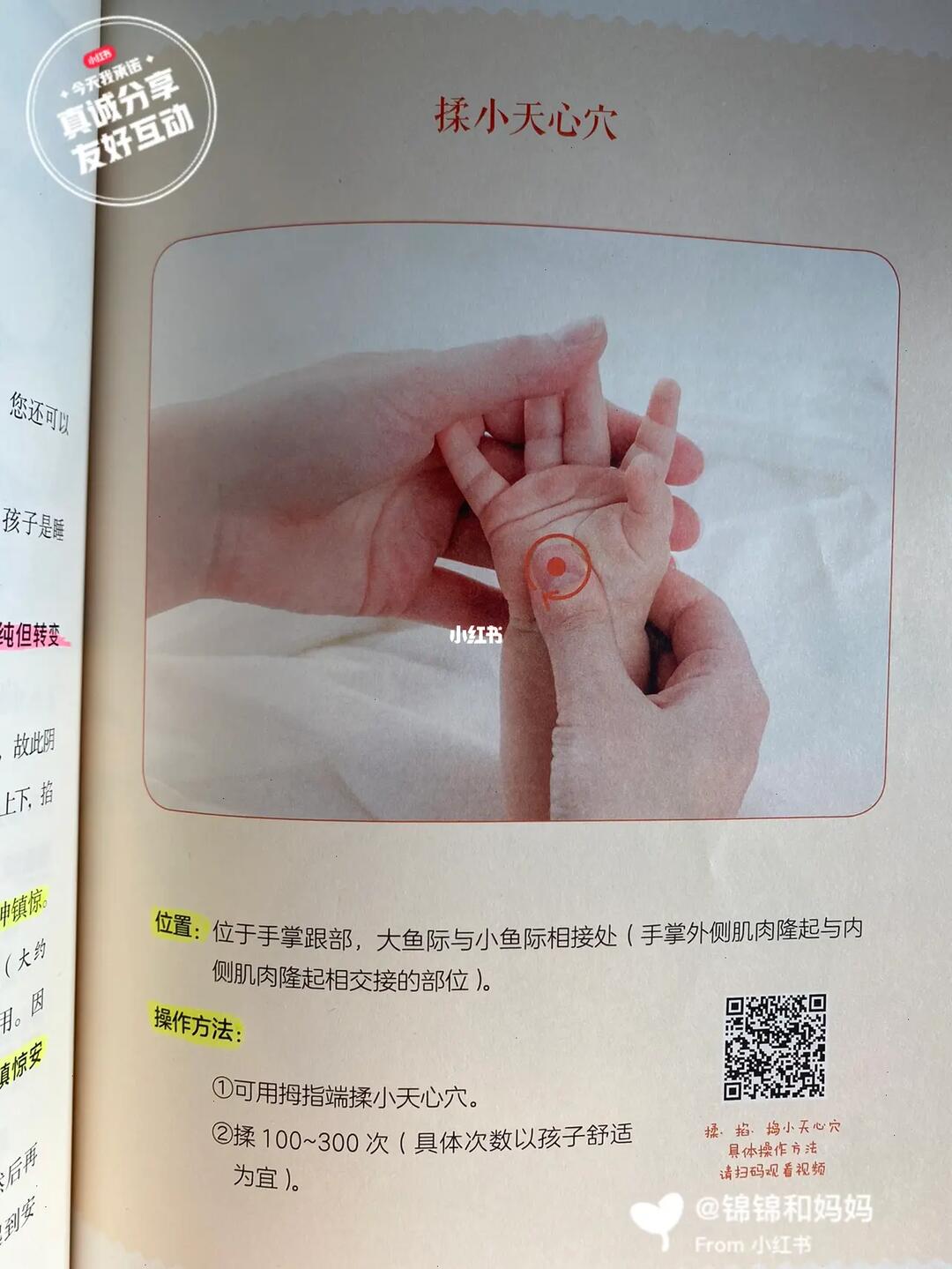 位置:在大小鱼际交接处凹陷中;手法:用指端揉,称揉小天心;作用:揉能