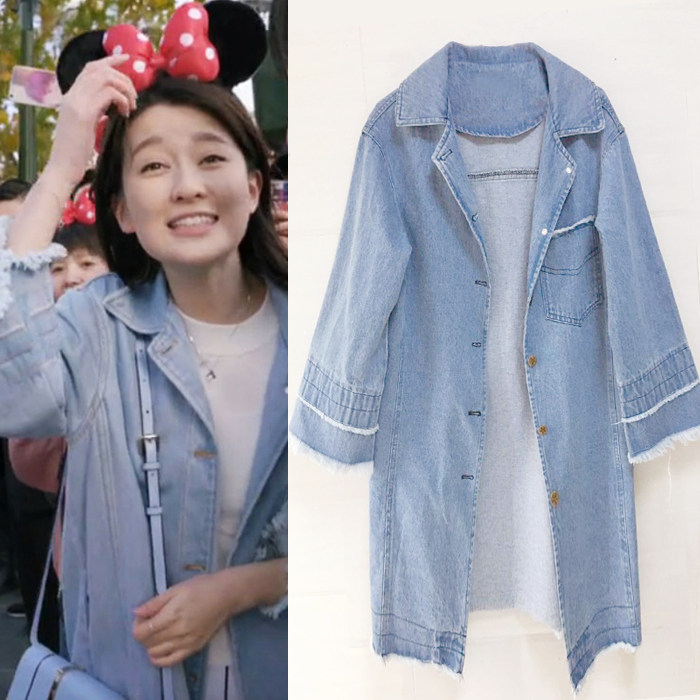 欢乐颂2关雎尔乔欣关关同款牛仔蓝色中长款宽松风衣外套女喇叭袖