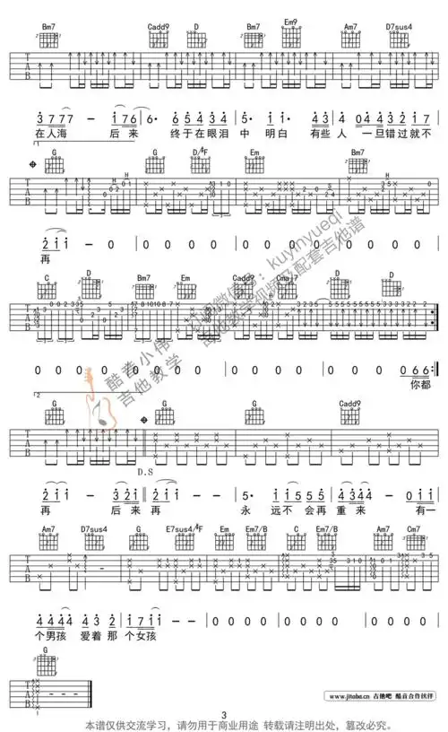 刘若英《后来》吉他谱_g调指法_高清六线弹唱谱_酷音小伟男生版.jpg