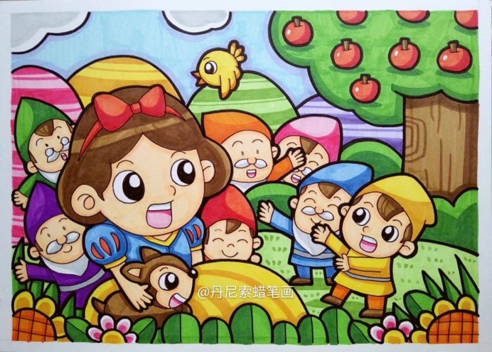 儿童绘画教程|小红帽与大灰狼的故事.格林童话小红帽插画系列# - 抖音