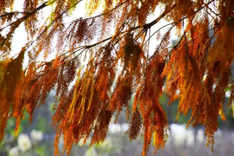 水杉冬天的叶子红艳艳