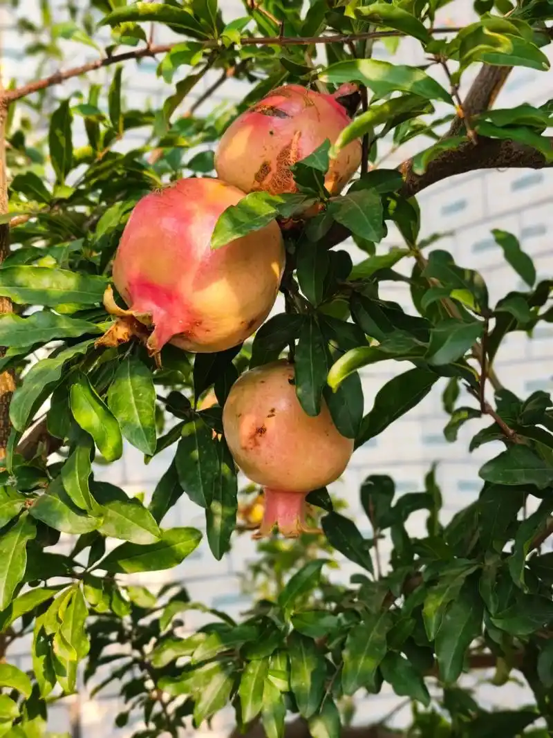盆栽石榴树是一种非常受欢迎的庭院植物,其果实鲜美多汁,叶子美丽.